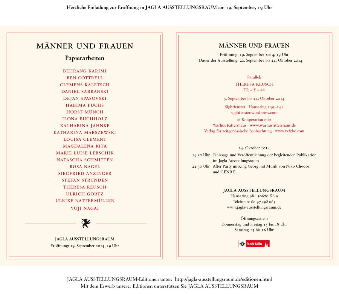 You are currently reading Männer und Frauen • Jagla Ausstellungsraum at Katharina Jahnke.
