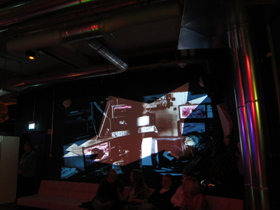 Diaprojektionen (80-tlg.) auf Gipsreliefwand in der Monkeybar Köln